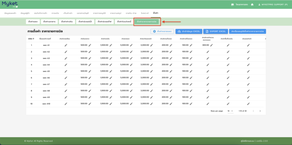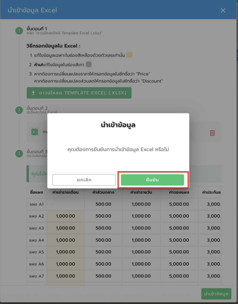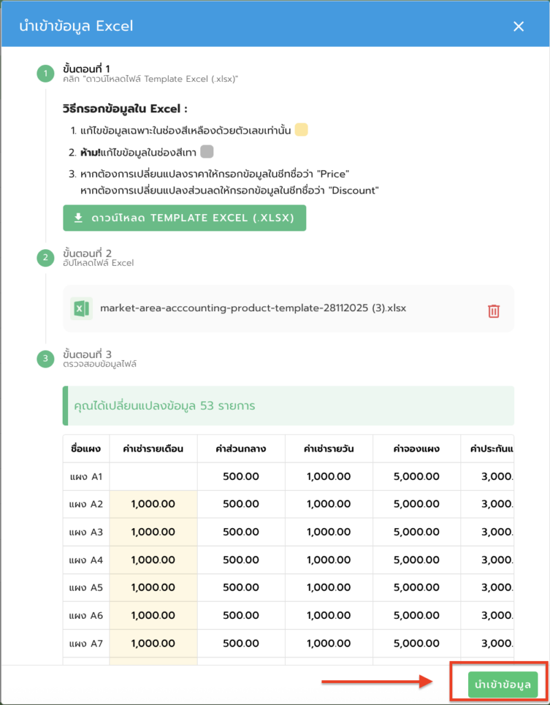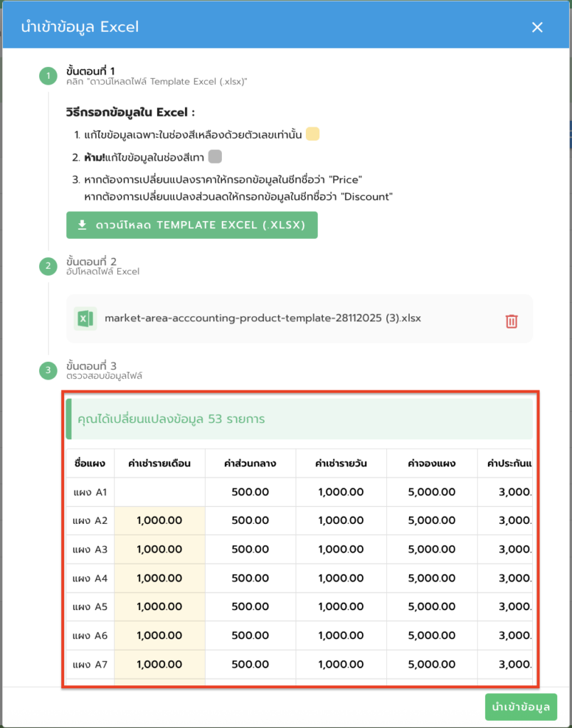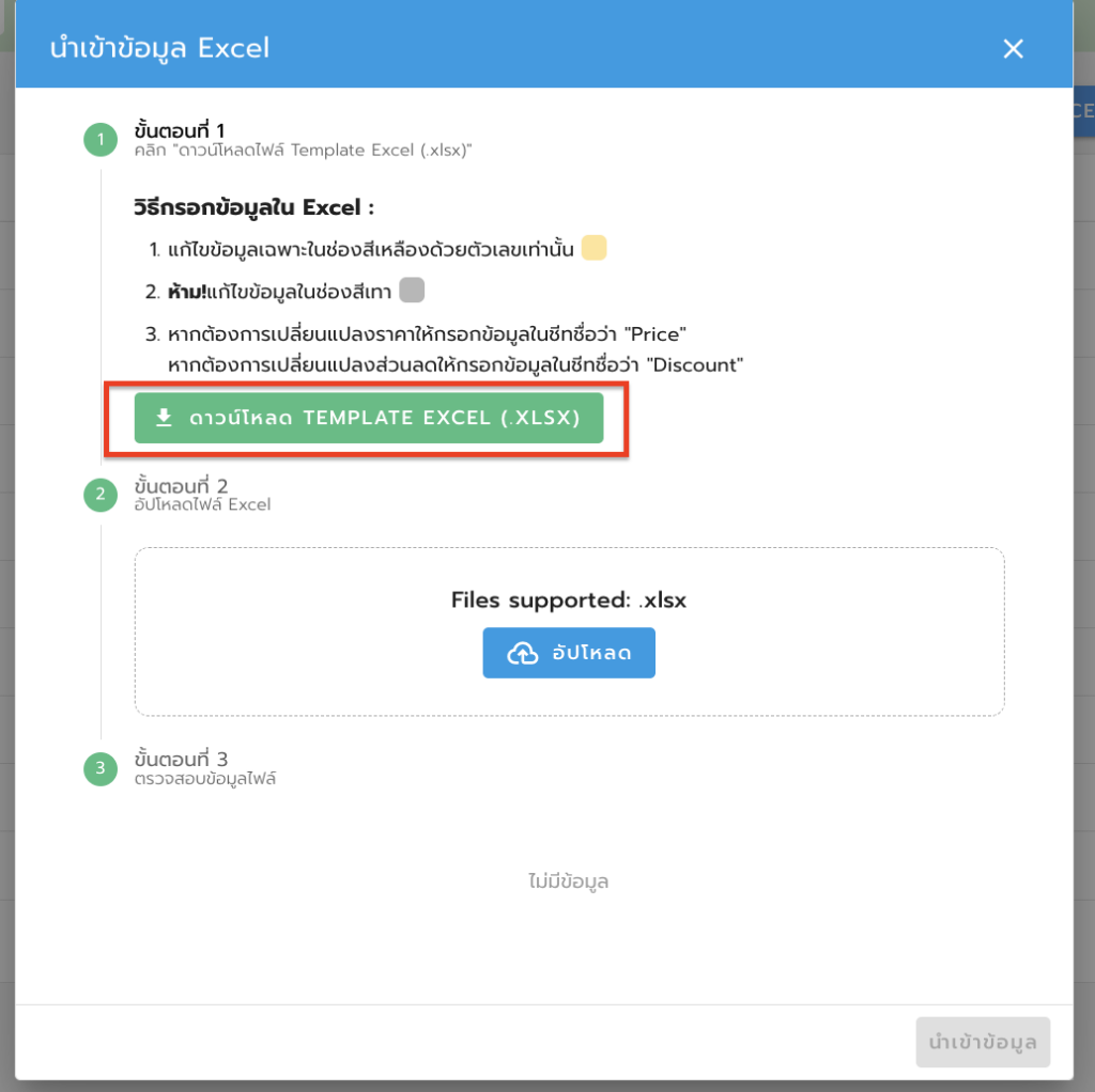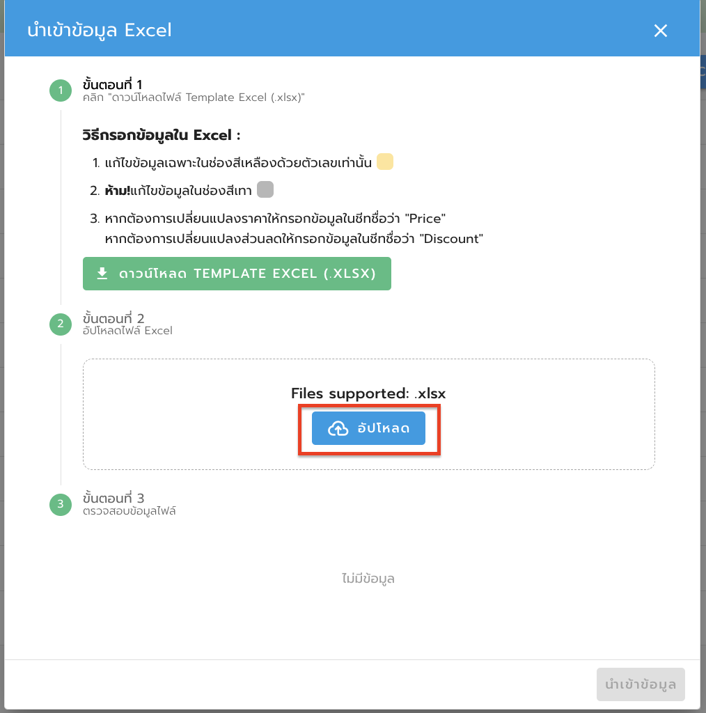 วิธีนำเข้าข้อมูลราคารายการบิลรายเดือนผ่าน Excel สามารถทำตามขั้นตอนได้ ดังนี้