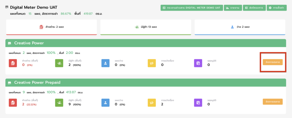 1. กดปุ่ม “จัดการตลาด” บริเวณตลาดหรือโซนที่ต้องการเข้าใช้งาน