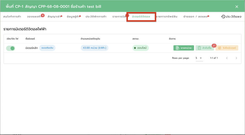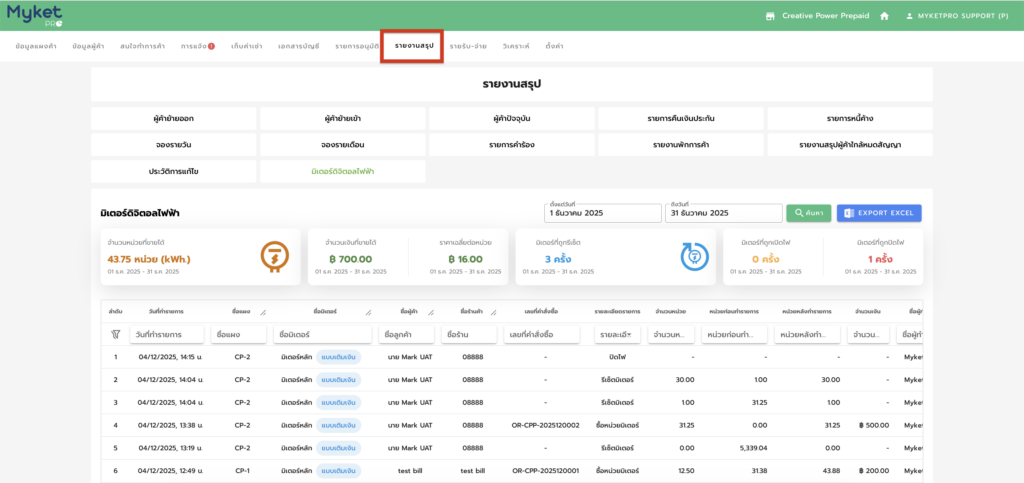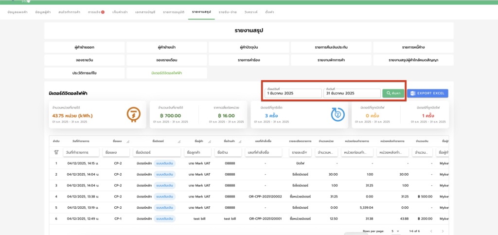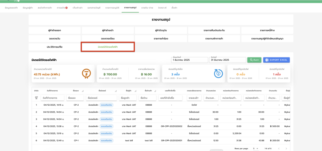 4. ระบบจะแสดง หน้ารายงานมิเตอร์ดิจิตอลไฟฟ้า ขึ้นมาให้ตรวจสอบ