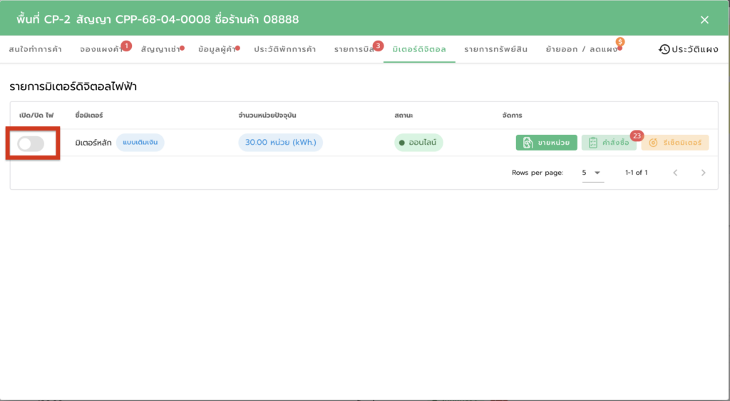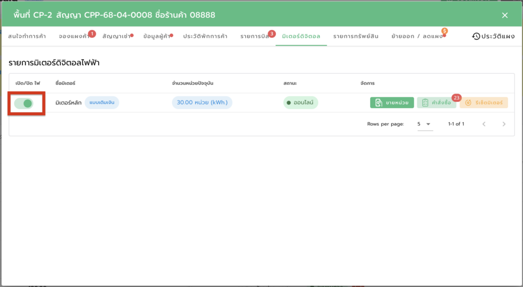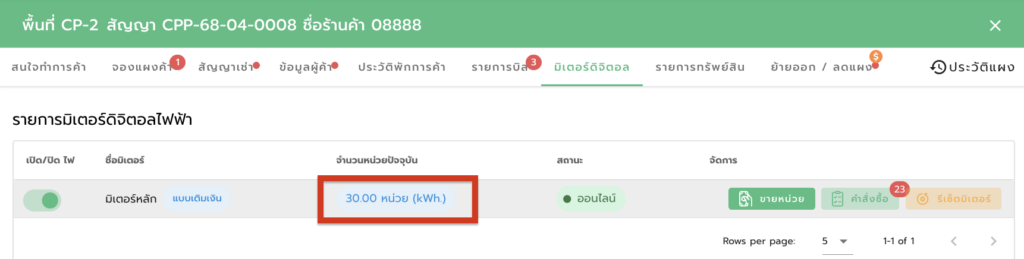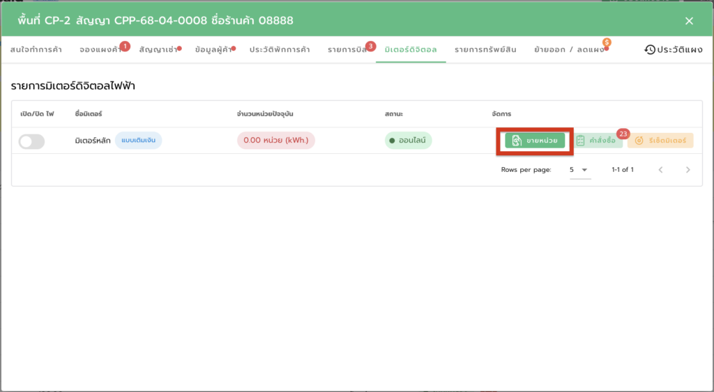 2. กดคลิกไอคอนรูปดวงตา บริเวณด้านหลังแผงที่ต้องการจะขายหน่วยมิเตอร์