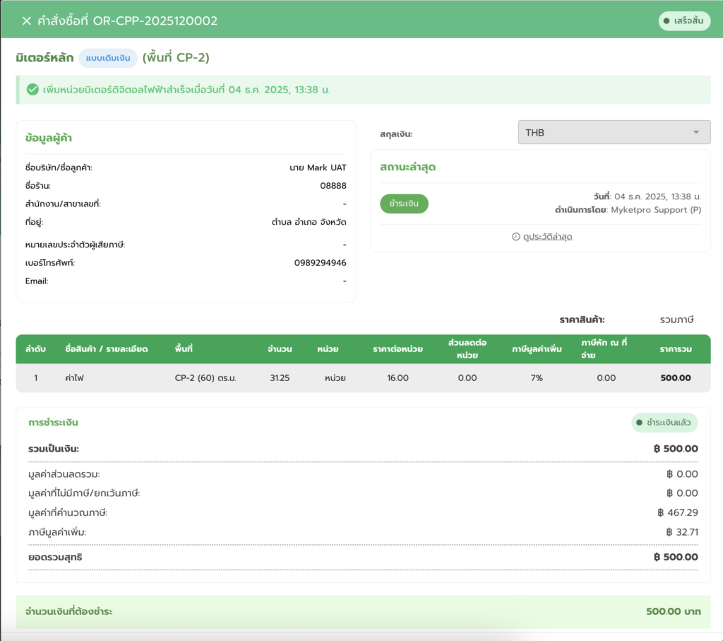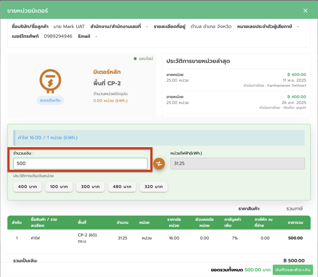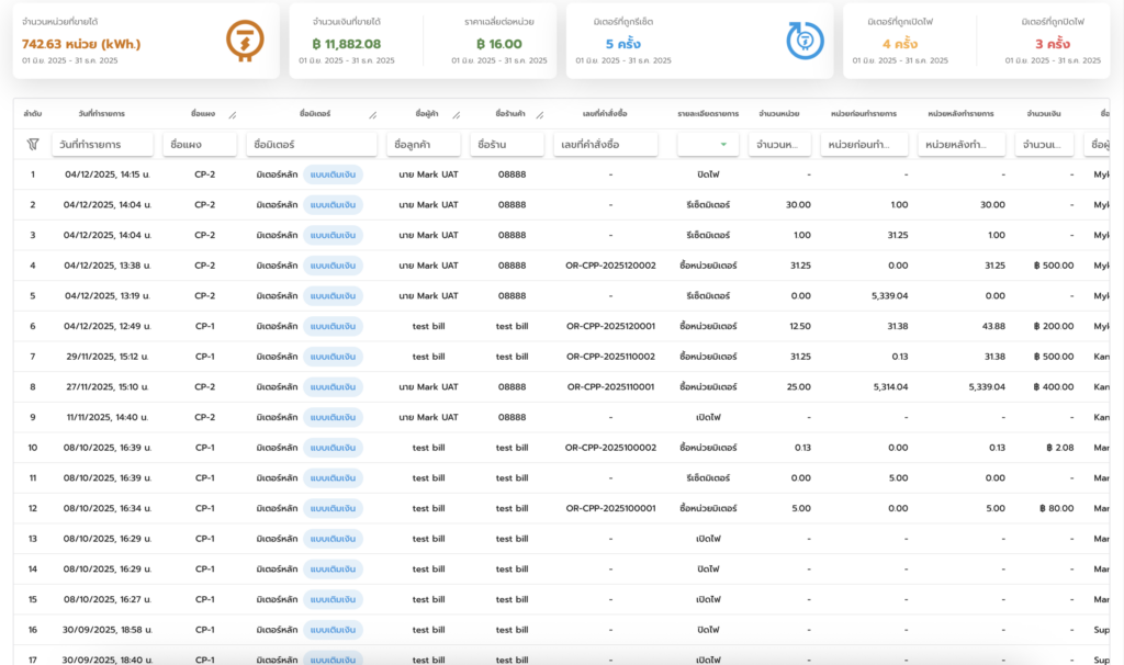 ผู้ใช้งานสามารถดูยอดคงเหลือ เติมเงิน และติดตามการใช้ไฟฟ้าได้อย่างแม่นยำและสะดวก