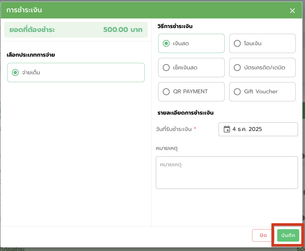 7. เลือกวิธีการชำระเงิน หลังจากนั้นกดบันทึก