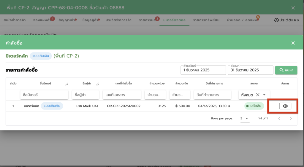 3. กดคลิกไอคอนรูปดวงตา เพื่อตรวจสอบรายละเอียดของคำสั่งซื้อ