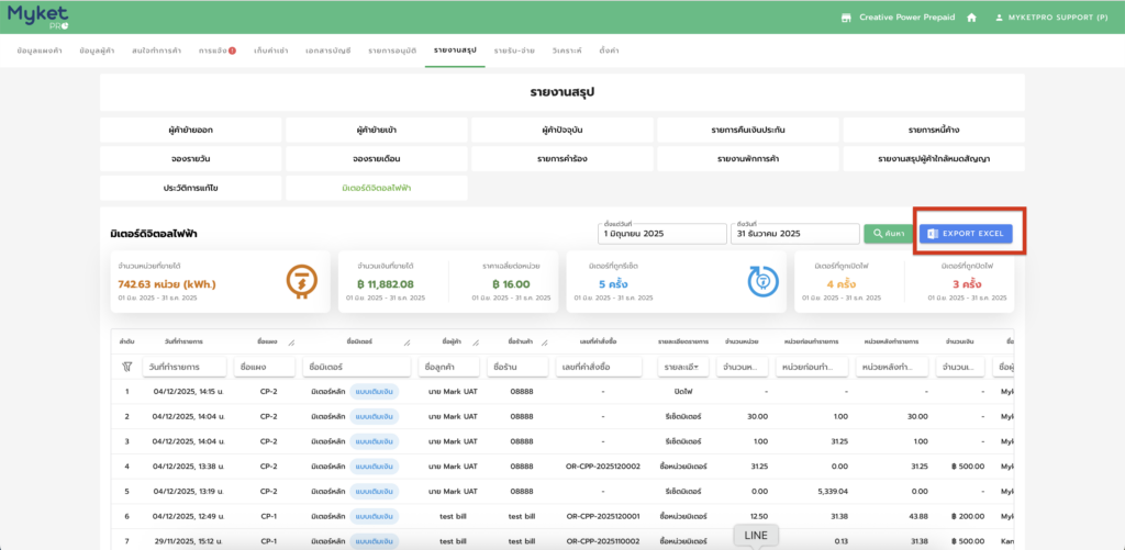 5. กดEXPORT EXCEL สำหรับใช้สำหรับดาวน์โหลดรายงานออกมาในรูปแบบไฟล์ Excel