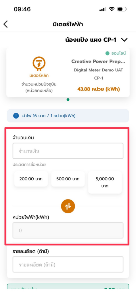 3. สามารถทำการซื้อหน่วยมิเตอร์ไฟฟ้า โดยระบุเป็นจำนวนเงินที่ต้องการ หรือระบุเป็นจำนวนหน่วย(ยูนิต)ได้เลย