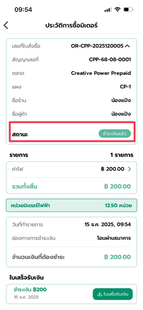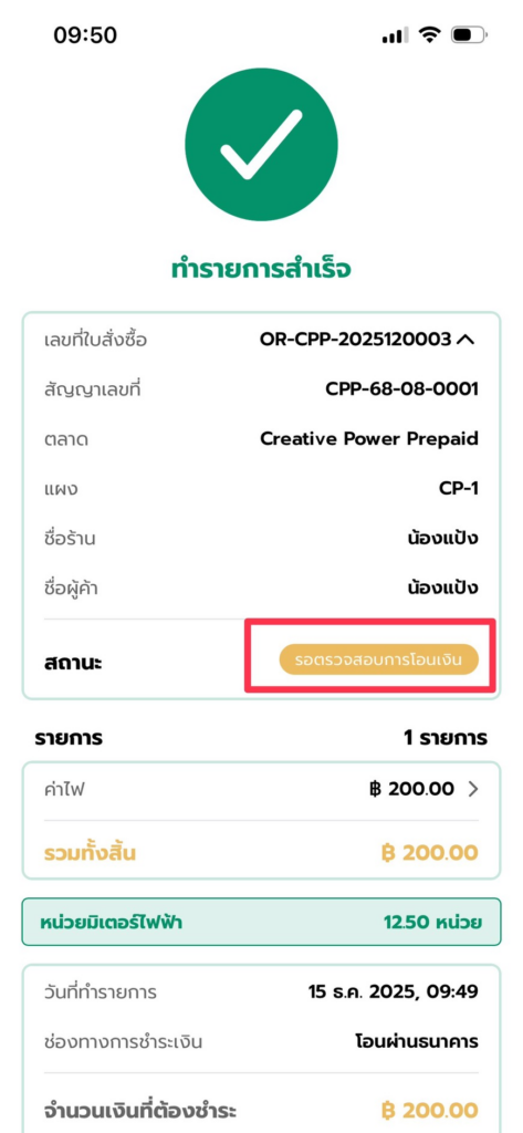 5. เมื่อทางตลาดตรวจสอบการชำระเงินและทำการอนุมัติแล้ว ทางผู้ค้าจะสามารถใช้งานไฟฟ้าได้ทันที