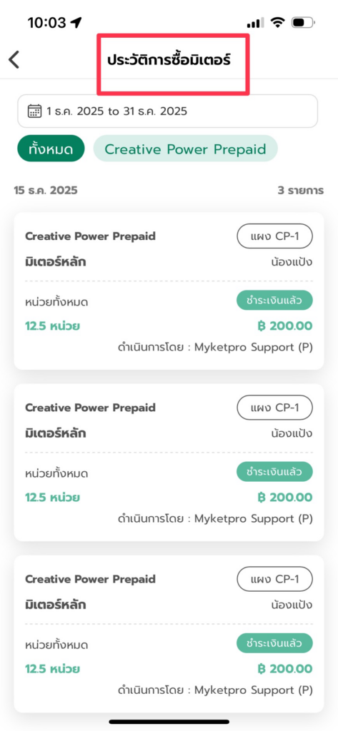 6. ทางผู้ค้าสามารถตรวจสอบประวัติการซื้อหน่วยมิเตอร์ของตนเองได้