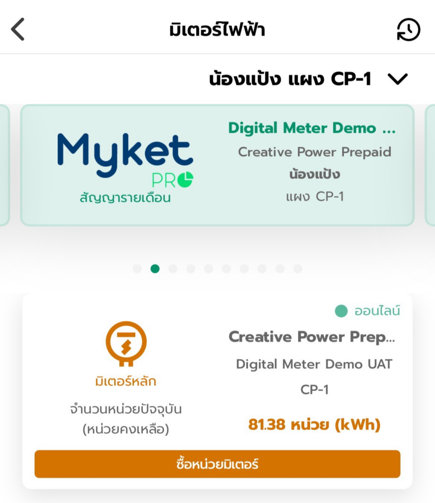 2.กดเข้าหน้ามิเตอร์ไฟฟ้าของแผงที่มีการติดตั้งมิเตอร์ และเลือก “ซื้อหน่วยมิเตอร์”