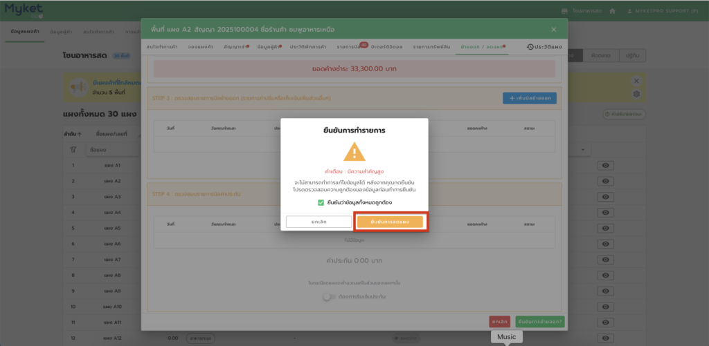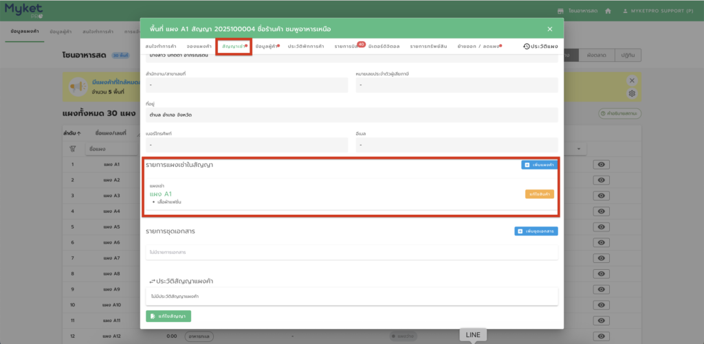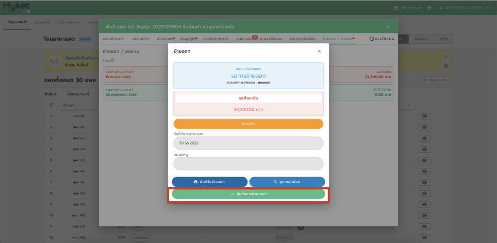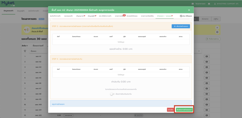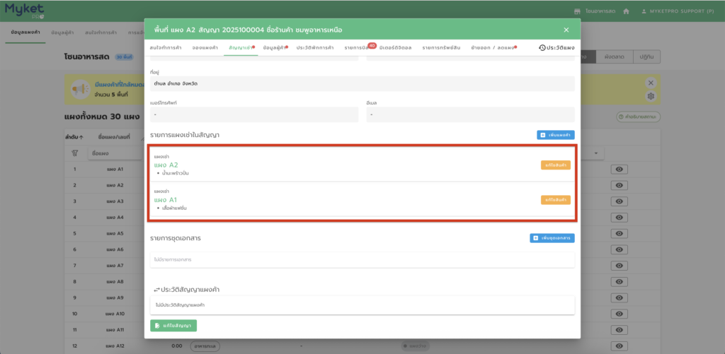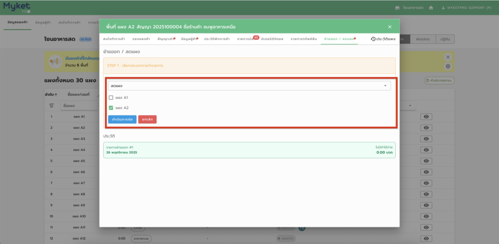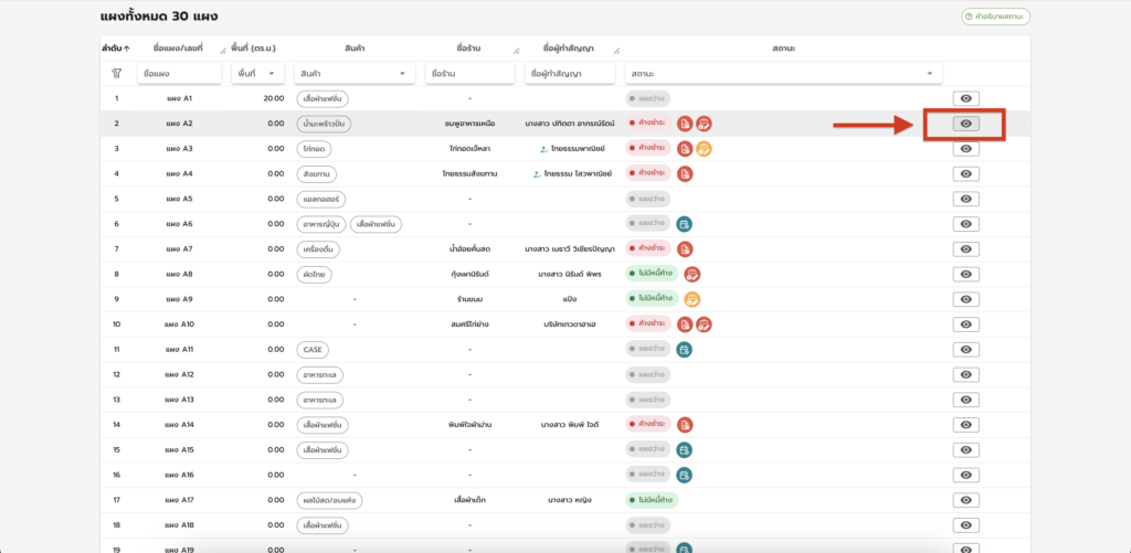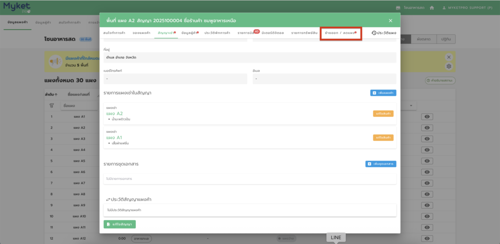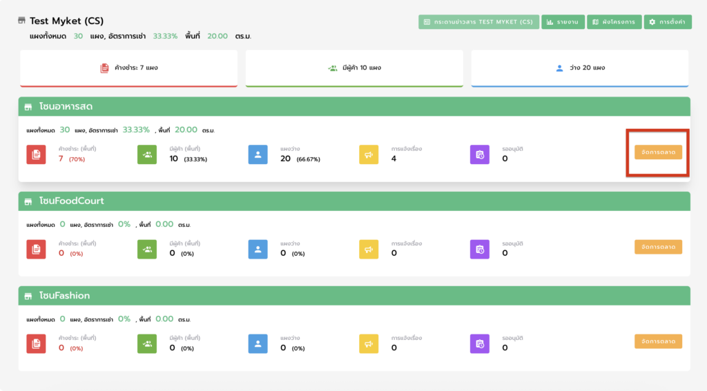 1. กดจัดการตลาดบริเวณตลาดหรือโซนที่ต้องการทำรายการย้ายแผง
