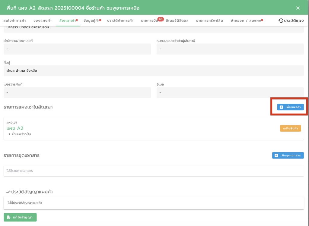 6. เมื่อเพิ่มแผงแล้ว ที่หน้าสัญญาจะแสดงแผงที่เลือกเพิ่มเข้าไปที่หน้าสัญญา