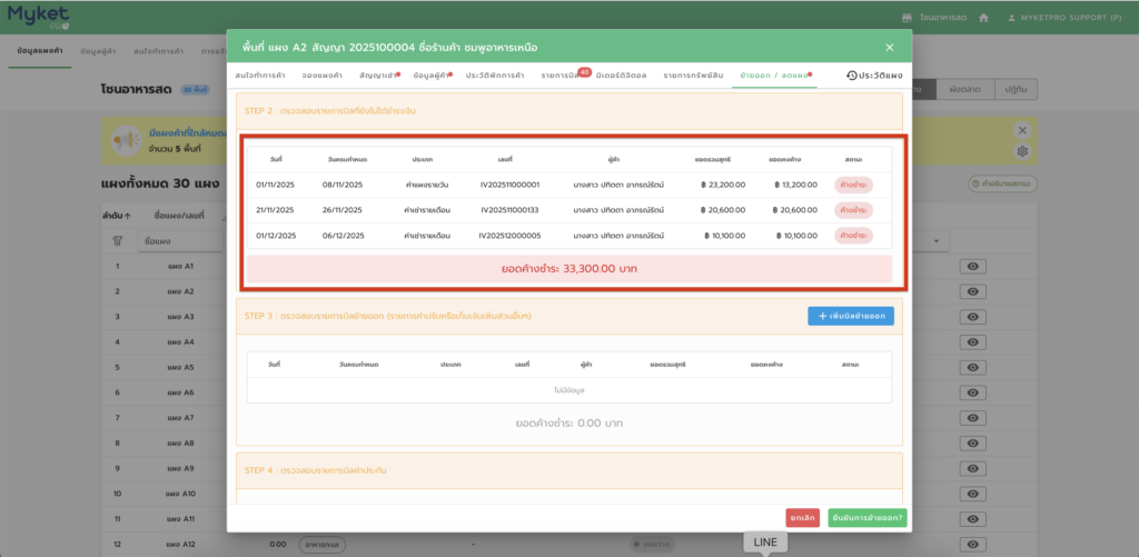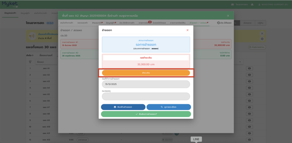 14. กดชำระเงิน กรณีที่ทางผู้เช่าต้องการชำระเงินให้ทางตลาดเพิ่มเติม