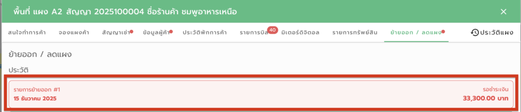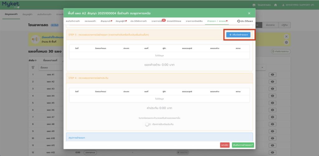 10. กดเพิ่มบิลย้ายออกกรณีที่ต้องการคิดค่าใช้จ่ายอื่นๆเพิ่มเติม เช่น ค่าปรับ / ค่าทำความสะอาดแผงเดิม