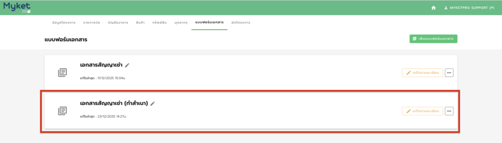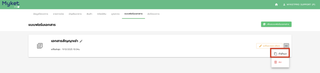 3. กดคลิกแถบจุดสามจุด ด้านหลังสัญญาที่ต้องการคัดลอก