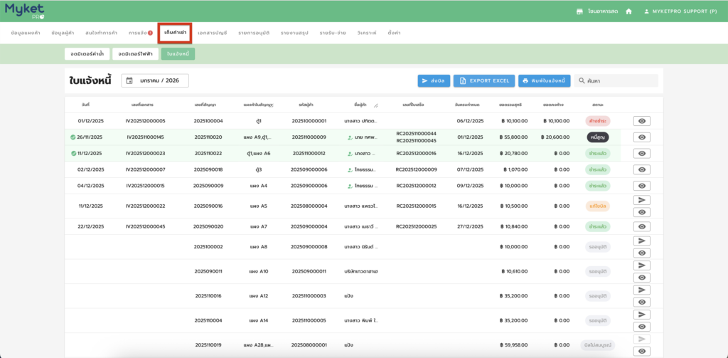 2. กดคลิกแถบ “เก็บค่าเช่า“