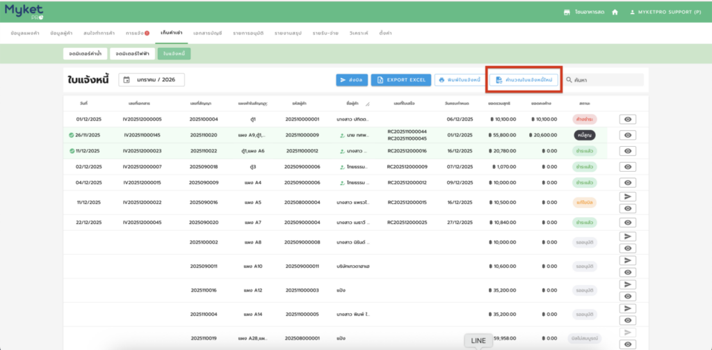 หมายเหตุ : ระบบจะทำการคำนวณใบแจ้งหนี้ใหม่ สำหรับใบแจ้งหนี้ที่อยู่ในสถานะ