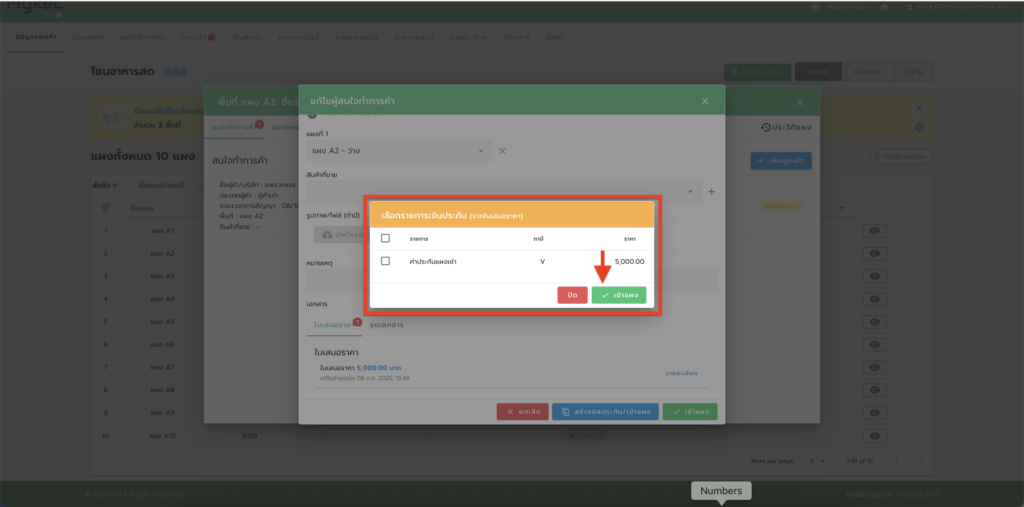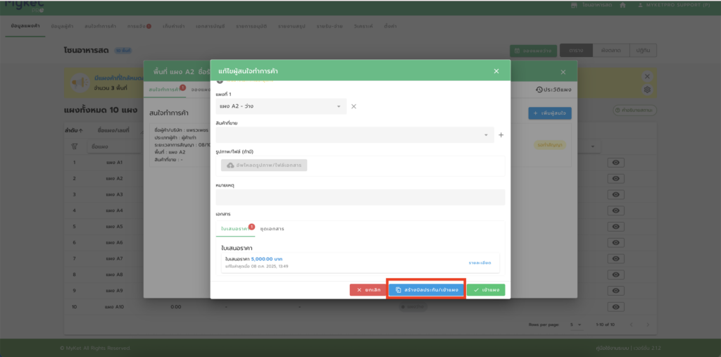 3. เมื่อถึงวันที่ผู้ค้ามาเข้าแผง ให้คลิก เข้าแผง